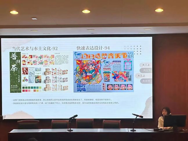 活动开始,张维诺同学以自我介绍拉开了本次分享会的序幕,并向在场同学简要概括了PPT中所包含的内容。她结合自己的作品和经历,让同学们深刻了解了视觉传达设计专业所需具备的核心能力。张维诺同学从大学的课程规划入手,阐述了每个学期的学习重点,为同学们指明了学习方向。同时,她还分享了提高专业课成绩的有效方法,鼓励同学们勇于实践、敢于创新。在活动现场互动环节,张维诺同学耐心解答了同学们提出的疑问。同学们纷纷表示,通过张维诺同学的分享,自己对视觉传达设计专业有了更深刻的认识,对未来的学习和职业规划也更有信心。