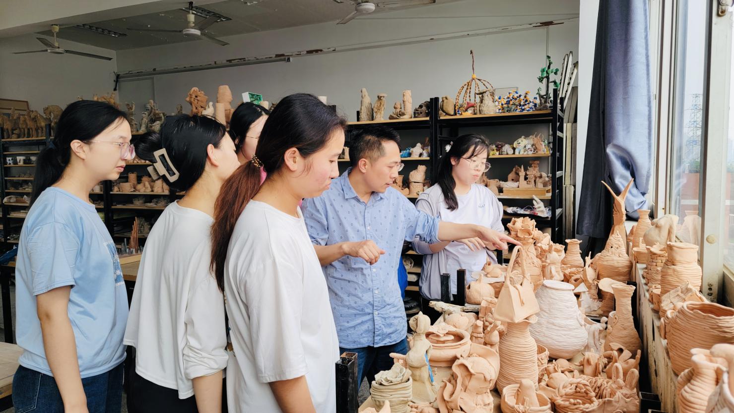 本次大艺展参赛作品由黄一莉副经理、专任教师周先锋、黄荣波进行指导,带领团队成员们前往江心洲烧制陶艺作品。师生们与泥土亲密接触,感受着它的柔软和力量;他们与火焰共舞,见证着陶艺作品的诞生和蜕变。每一件作品都凝聚着他们的汗水和智慧,也承载着他们对艺术的热爱和追求。