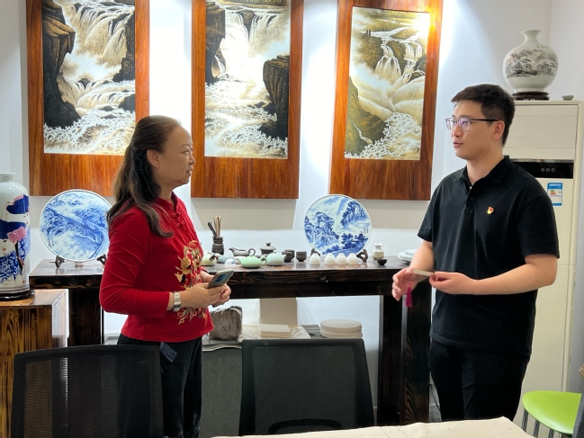 活动中,美院一行在“瓷缘残疾人之家”负责人戢弘宇的带领下参观了部分残疾人优秀制品展览,随后就如何提高残疾人制品质量、拓宽制品销售途径展开交流。负责人戢弘宇从原材料、制作工艺、销售途径、社会反响四个方面介绍了残疾人手工艺制品的现状与难点,徐祥老师提出制品可以紧随时代风向,融入创新元素,在现有手工艺特点与基础上向外界打响“瓷缘残疾人之家”招牌,拓宽残疾人帮扶途径。最后双方围绕残疾人帮扶现状、培养情况、发展路径和合作意向等方面进行了深入探讨。临行之际,公司员工党员也为“瓷缘残疾人之家”学员带来了手语国歌教学。