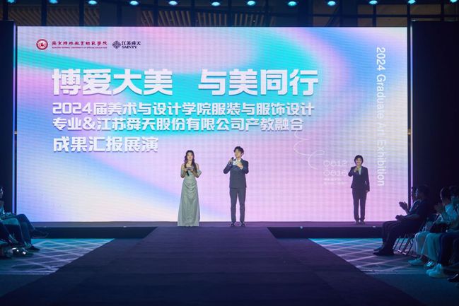 活动伊始,江苏省服装协会龚会长、江苏舜天股份有限公司代表和公司领导为“特•别不一•YOUNG”学士服设计大赛颁奖并合影留念。此次设计比赛吸引了众多富有创意和才华的选手参与,他们用自己的奇思妙想和精湛技艺,为学士服赋予了全新的生命力和独特魅力。学士服作为高校人文风情的载体,融入了中华传统元素和南特“博爱塑魂”的校训精神,寓意深刻,也体现了莘莘学子对母校浓浓爱意及同学间友谊长存的美好愿景。