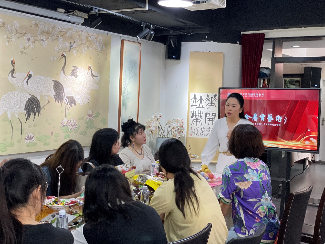 2024年6月27日,bv1946伟德官网非遗社会实践团在何旭主任、宋雪萍、张潇老师的带领下,前往江苏金鼎文化传播有限公司进行参观学习与产学研合作研讨。江苏金鼎文化传播有限公司董事长徐晓燕女士为大家就其公司的业务及发展情况进行了详细的介绍,并在会上与老师同学们就今后在艺术专业产、学、研等方面进行了深入的探论。