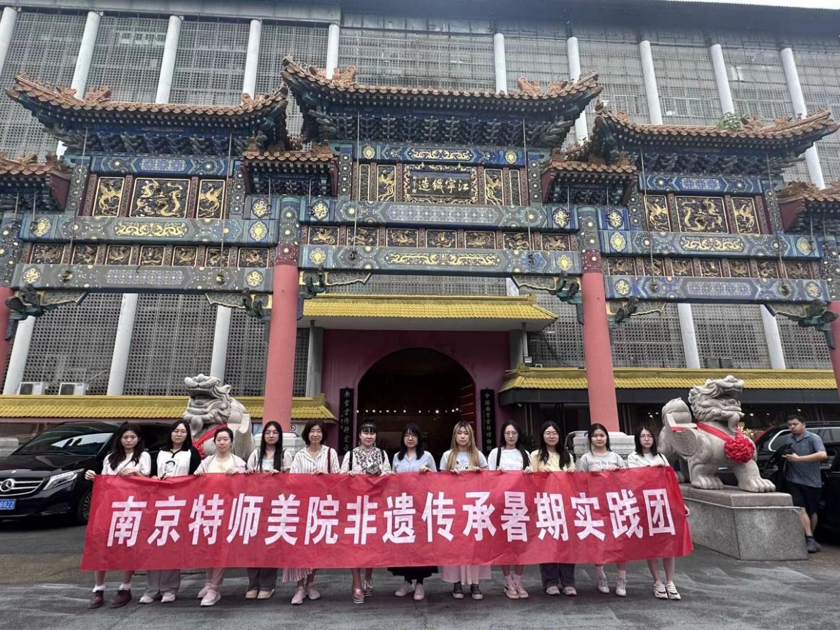 当日下午,实践团来到南京民俗博物馆甘熙宅邸,参观欣赏了南京清朝时期的古建筑,并结识了南京市工艺美术大师、布艺刺绣的祖传非遗传承人高瑞雷,双方就实习实践与布艺刺绣文创产品开发方面达成了合作意向。随后实践团又前往馆内的其他非遗体验馆,了解到更多南京地区的非遗技艺与文化,还购买了一些喜爱的相关非遗文创产品作为纪念。在社会实践活动过程中,大家采用短视频和文字的形式记录下来,并通过多媒体平台等形式对非遗文化进行宣传与推广。