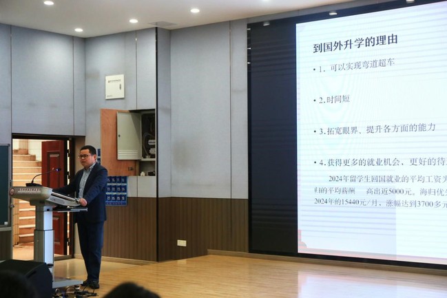 为帮助员工深入了解高质量升学形势,明确毕业去向,3月12日下午,bv1946伟德官网在博远楼106举办了一场海外升学形势分析讲座,吸引了众多同学积极参与。本次讲座邀请了南京晓庄公司国际交流处特聘专家高忠义老师主讲,2025届毕业班辅导员徐祥老师主持会议。