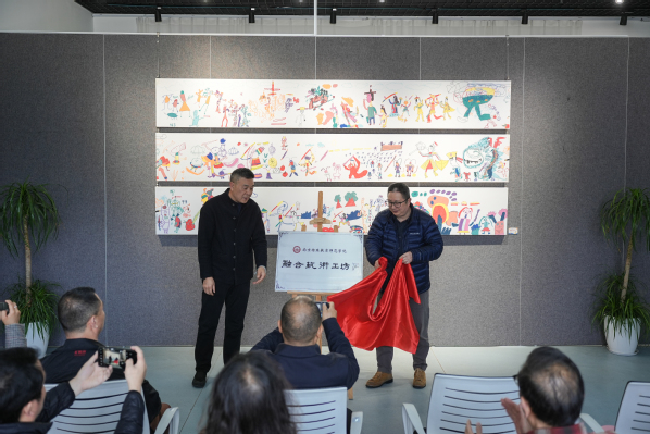 随后,顾平教授和左国政先生共同为“融合艺术工坊”揭牌。融合艺术工坊旨在构建一个集教育实训、科研探索及社会成果转化功能于一体的综合性体系,以促进融合艺术的全面繁荣与发展。
