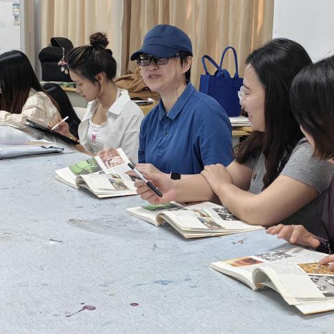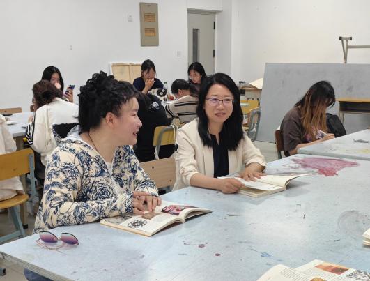 本次教学沙龙在热烈且有序的氛围中展开。何旭、刘春颖老师首先观摩了《装饰画》课程的教学过程,之后两位老师与员工们进行热情的交流,充分了解《装饰画》课程情况。交流结束后,参与人员围坐一起,就《装饰画》课程的教学内容、教学方法、课程思政融入点等方面进行了深度的讨论交流,达成共识,为之后的“博爱行动”制定了主要方向和计划。