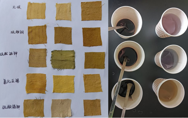实验室内,团队成员以石榴皮等天然材料为染源,通过反复调整时间、浓度与PH值,细心记录每一抹色彩背后的科学规律。他们不止在做实验,更是在捕捉色彩与情绪之间那道看不见的光——为后续课程注入理论的温度,也让植物染的疗愈价值初现微光。“每一次染料的沸腾、每一次色彩的沉淀,都是传统技艺与现代科学的对话。” 团队成员在实验日志中写道。