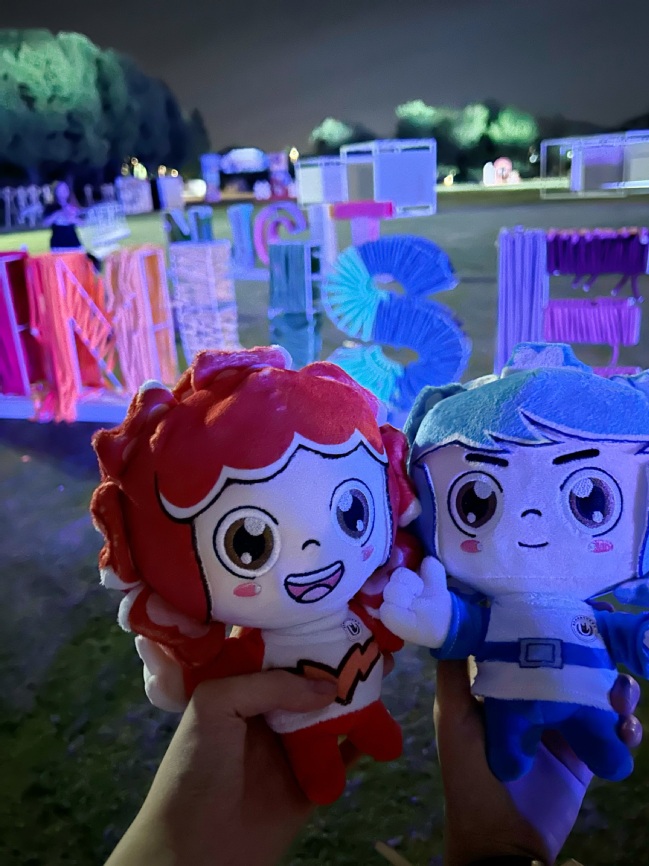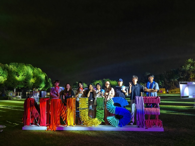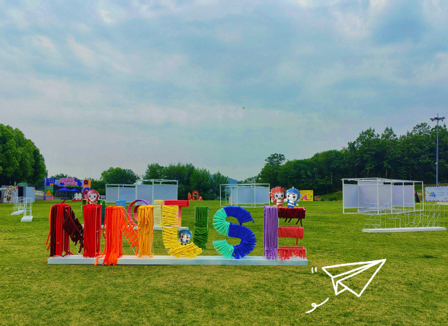 本次活动主办方统一制作立体金属字母基础框架,表面预留缠绕结构。由于人数和队伍较多,但材料有限,美院学子便提早赶到现场,为装饰艺术装置争取更多材料。随着立夏的到来,气温也逐步升高,美院学子不惧烈日,用最饱满的热情投入艺术装置的装饰。第二天,即便下起了雨,阳光美术青年们不畏风雨,继续点缀艺术装置。在吉祥物“小特”的加持下,艺术装置也逐步加工完成,雨后,南特艺术装置宛如一道彩虹,在仙林大学城展现南特的别样风采。